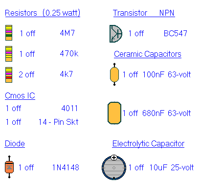 This is a simple - easy to build - fridge-type alarm circuit. For power - I used a small 9-volt battery. But the circuit will work from 5 to 15-volts - just choose a buzzer that's suitable for the voltage you're using. The standby current is virtually zero - so the battery life is good.